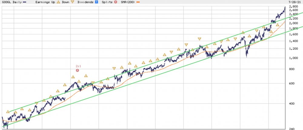 Chips Juli 30, 2021 Am 28.7.2021 um 20:29 von Toni: Übertrieben: Fast verdreifacht seit Coronatief im März 2020….sieht irgendwie nach einer nötigen Korrektur aus…. Hier mal das Umsatzwachstum im Vergleich zum Vorjahr und zu 2 Jahre davor. Man sieht, dass die 61% Umsatzwachstum und auch das Gewinnwachstum relativ zu dem sehr schwachen Q2/20 zu sehen sind. Vergleicht man mit dem Quartal von vor 2 Jahren bewegt sich das alles wieder im fast gewohnten Rahmen. Allerdings sind hier 58% immer noch 10%-Punkte über dem "normalen" Wert, was stark ist. Ich vermute mal, wenn das Q3/20 nicht so schlecht gewesen wäre, hättest du deine grünen Linien auch etwas weiter oben platziert und der aktuelle Kurs würde nicht so teuer aussehen. Allerdings ist es eben immer schwer, falls ein Unternehmen sein (Umsatz)Wachstum nun abschwächt oder steigert, würde man wohl auch erwarten, dass der Kurs außerhalb des normalen Rahmens sich bewegt. PS: Im Vergleich zu Amazon holt Alphabet in den letzten Monaten deutlich auf. Amazon und Alphabet sind nun bzgl. Marktkapitalisierung wieder gleich auf. Diesen Beitrag teilen Link zum Beitrag