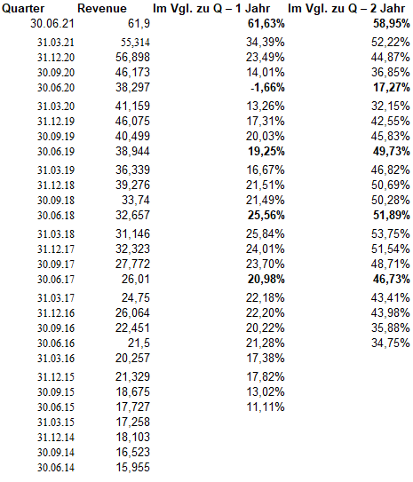 SvenDom April 28, 2021 vor 8 Stunden von Albanest: ...was für Dimensionen! Ich meine, Markus Koch sprach gestern davon: vgl: Die meisten Analysten sprechen über ein EPS von 15-16$....mal sehen, ob das erreicht wird. Einige weniger sprechen sogar von einem EPS von 22 oder 23,xx$, aber das ist natürlich etwas hoch gegriffen, aber mal abwarten. So in der Art.... Und jetzt 26,29$, und damit die kühnsten Erwartungen deutlich übertroffen! Toni sprach Seiten zuvor mal von einem No-Brainer. Ich bin auf die Entwicklung nach Corona gespannt, aber ich denke, Sorgen muss man sich auch für die Zeit nicht machen! Eine Aktie, bei der ich wirklich so gut wie nix verfolge und nur laufen lasse... Diesen Beitrag teilen Link zum Beitrag