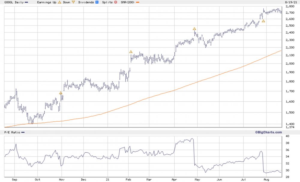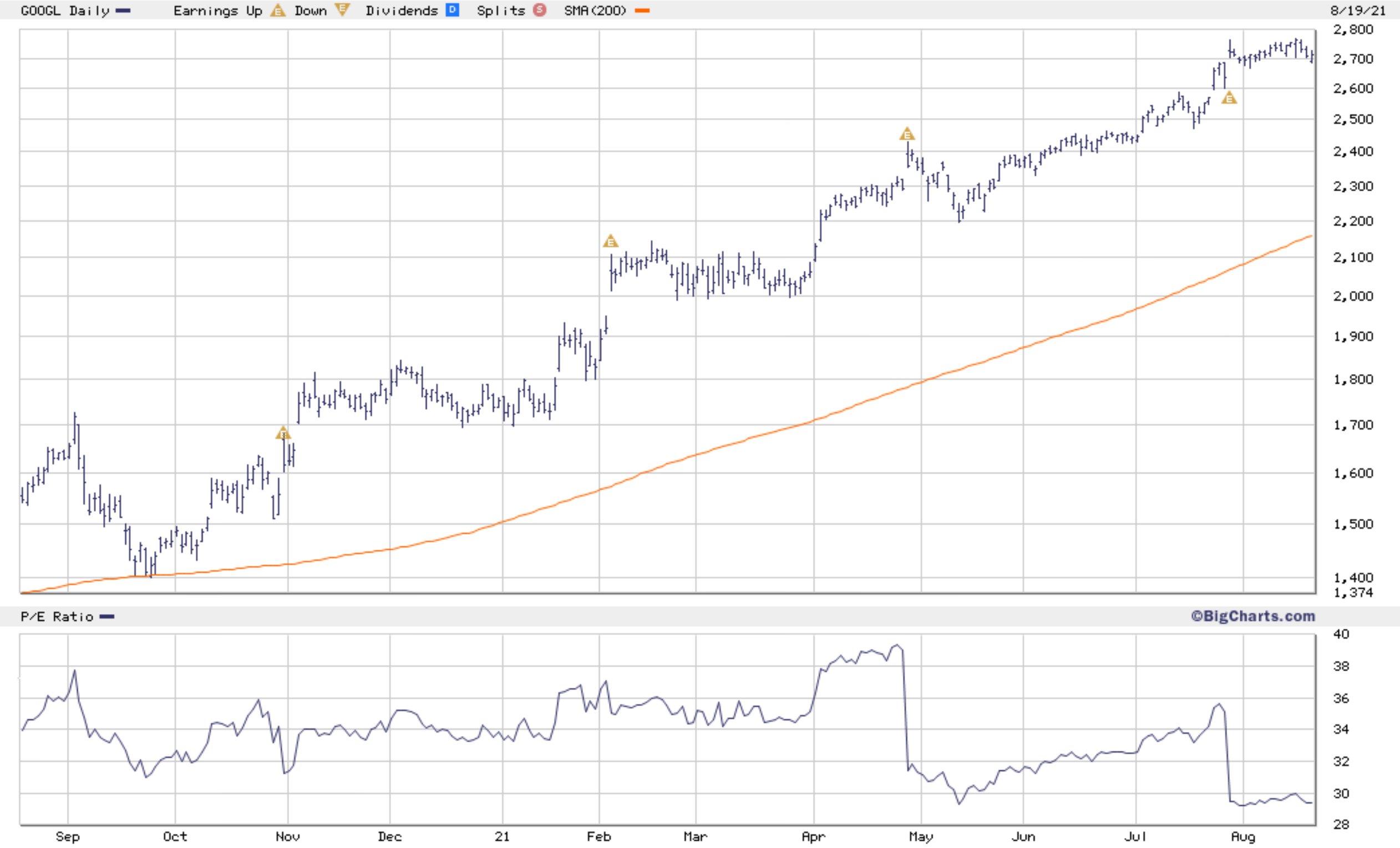 Toni August 19, 2021 · bearbeitet August 19, 2021 von Toni Die letzten 12 Monate waren schon irre: Der Aktienkurs hat sich fast verdoppelt und das KGV (untere Skala) trotzdem reduziert: Das Gewinnwachstum der FANGs ist nach wie vor unfassbar…. Diesen Beitrag teilen Link zum Beitrag