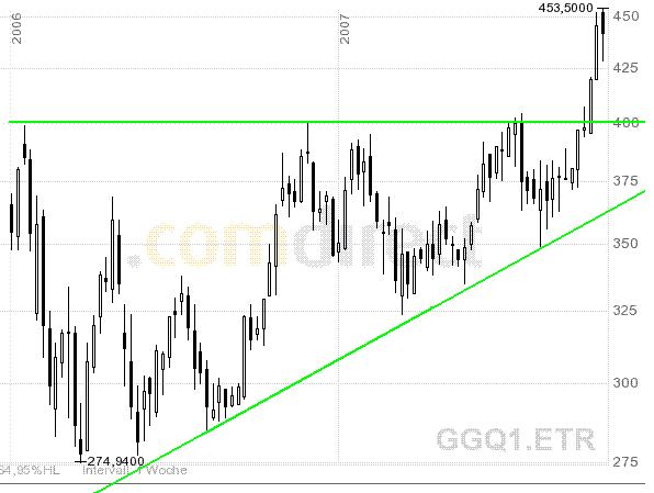 AbsoluterBeginner Oktober 19, 2007 Schade, dass ich erst bei so hohem Niveau eingestiegen bin. Habe bei 450,76 € gekauft. Die Aktie steht aktuell bei 459,22 € aber ich hatte schon viel früher eine Investition geplant. Mist, Mist, Mist. Diesen Beitrag teilen Link zum Beitrag