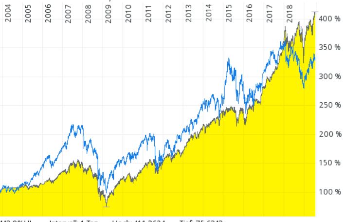 Hier der faire Vergleich DAX Performance vs. Dow Jones mit Dividenden. Bis Ende 2017 hat DAX geführt wenn man ihn günstig Ende 2003 gekauft hat.