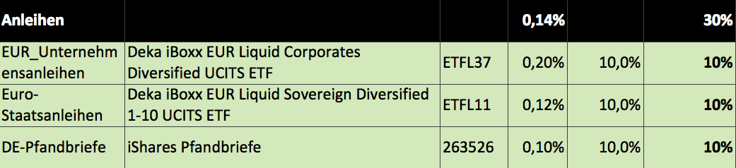 CHX November 14, 2013 stimmt – für Anleihen bin ich dem allgemeinen aktuellen Rat hier im Forum (und auch dem im Fred von Sapine) gefolgt. Würdest du trotz 0,25% Leitzins gerade Anleihen-ETFs kaufen? Das hängt von vielen Faktoren ab: Gehe ich davon aus, dass wir in den nächsten Monaten stärkere Rücksetzer bei den Aktien sehen werden, so könnte man US-Anleihen und Bundesanleihen als "Safe Haven" einsetzen. Gehe ich davon aus, dass die Hausse noch geraume Zeit weiterlaufen wird, so könnte ich Unternehmensanleihen und im Besonderen HighYield-Anleihen einsetzen, ebenso Anleihen der Schwellenländer. Gehe ich davon aus, dass demnächst das Tapering seitens der FED eingeläutet wird, würde ich Staatsanleihen der DM und EM meiden. Betreibe ich passives Investieren, so würde ich die Asset Allokation entsprechend festlegen und dementsprechend investieren - ggf. achte ich bei den Anleihen auf die modifizierte Duration, die ich momentan eher niedriger setzen würde. Diesen Beitrag teilen Link zum Beitrag