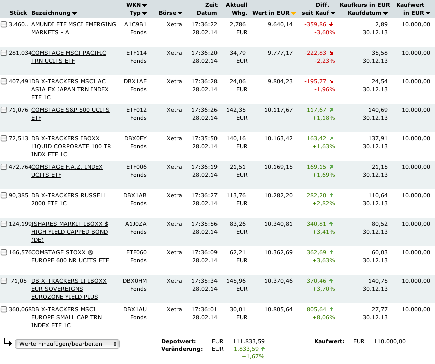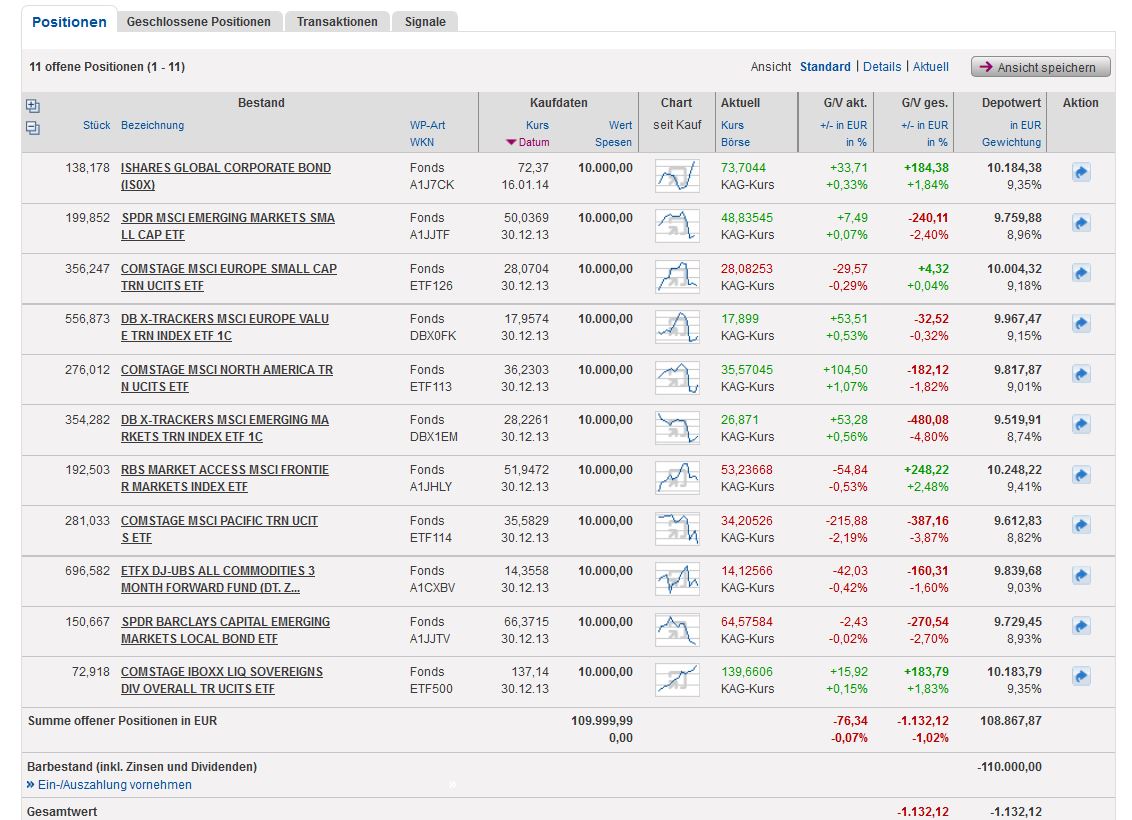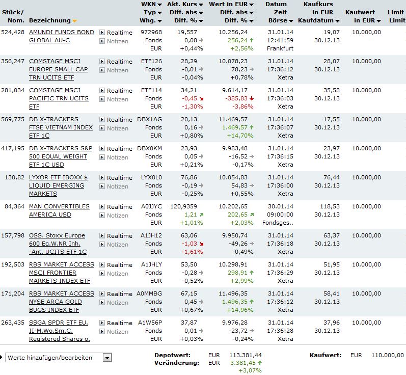 chart Februar 2, 2014 · bearbeitet Februar 2, 2014 von chart Ich kann es ja so machen, am Wochenende nicht ganz aktuellen Zahlen posten und am Montag dann hoffentlich die aktuellen Zahlen. Oder wir einigen uns darauf das alle die Kaufkurse der KAG nehmen, aber am Ende des Monats halt die aktuellen Xetra Kurse veröffentlichen. So hat auch keiner einen Nachteil. Diesen Beitrag teilen Link zum Beitrag