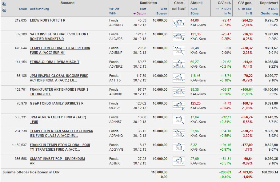 Mr. Maillard Februar 1, 2014 · bearbeitet Februar 1, 2014 von Mr. Maillard Keinen Bock mehr, morgen nehm ich Excel und xlquotes Hey Lurklurk, ich habs dir mal schnell in Onvista reingehauen. Ich übernehme aber keine Garantie (ist spät und Cortal Consors und Onvista kannten 2 deiner Fonds tw. nicht oder es waren Kurse, die keinen Sinn machten verfügbar, weshalb ich dann aus dem Graphen mit Pi * Fensterkreuz nen Kurs genommen hab). Außerdem hab ich deine Ausschüttung von 0,02USD pro Anteil für den A0M2EK noch nicht drin. Deshalb sieh es als erste Tendenz oder so. Gruß Mr. Maillard Diesen Beitrag teilen Link zum Beitrag