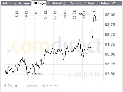 Sapine Januar 4, 2008 · bearbeitet Januar 4, 2008 von Sapine Nach Übernahmegerüchten durch DOW Chemical gingen die Kurse heute nach oben. Neues Allzeithoch für Linde. Mal schaun was dran ist an dem Gerücht. Linde-Aktie profitiert von Gerüchten um Dow-GebotHändlern zufolge hat der US-Chemiekonzerns Dow Chemical ein Gebot für den Industriegaskonzern Linde abgegeben. Dessen Aktien schossen daraufhin auf ein Allzeithoch. Linde lehnte einen Kommentar ab. "Marktspekulationen kommentieren wir nicht", sagte ein Linde-Sprecher. Quelle Financial Times Deutschland Eine meiner Lieblingsaktien Diesen Beitrag teilen Link zum Beitrag
