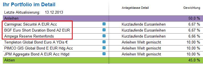 Ich hatte es mit meinem eigenen Risikoprofil gemacht und prompt kamen die Fonds für Aktien und Rohstoffe raus bei Null Anleihen (was ich nicht für optimal betrachte).