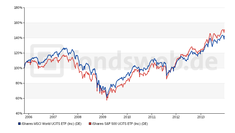 kohlehalde Dezember 23, 2013 Da gehen die eigentlichen Unterschiede unter. Die Verteilung 70/30 ist dem BIP geschuldet. Der MSCI World gewichtet aber seinen 70% Anteil entsprechend der Marktkapitalisierung. Damit mischen sich zwei unterschiedliche Ansätze. Dazu kommt, dass man einmal nur einen ETF hat und bei der Aufsplittung (NA, STOXX600 +Pacific) drei ETFs. Das ist nicht immer ein Vorteil, weder beim Besparen noch beim Rebalancieren, hier sind die Vorteile aus einer Aufsplittung nicht unter 100.000 Euro zu generieren. Wenn man auf den Free Float setzen will wäre es in diesem Fall eh besser gleich auf eine World ACWI zu setzten. Ein Fonds für die ganze Welt. Mit diesem ETF, sowohl mit dem World aber noch mehr mit dem AWCI, hätte man in den letzten Jahren doch eine höhere Rendite bei geringerer Volatität eingefahren. Das kommt daher, dass Aktien auf die USA eine für die anderen Regionen eine wesentlich höhere Rendite bei geringer Vola geboten haben. Während Aktien auf die EM doch schon seit längerer Zeit eher ein trauriges Kapitel sind.. Für einen Anfänger/Beginner, und das sind die TO's hier wohl meist, würde ich eine 2-3 Fonds Depot-Variante bevorzugen. Diesen Beitrag teilen Link zum Beitrag