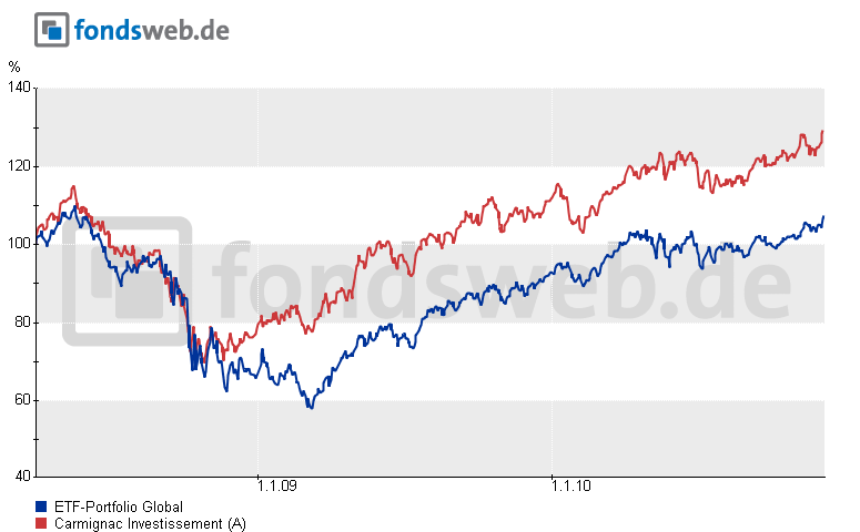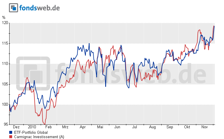 merkur33 November 22, 2010 · bearbeitet November 22, 2010 von merkur33 Hmm, US-Banken hat er kürzlich versilbert. EM sind mMn im Moment durchaus nachhaltiger als so manches andere. Gold ist ein langes Thema - aber von Carmignac eher als Absicherung denn als eigentliches Investmentthema gedacht. Rohstoffe - da haste recht, die sind natürlich sehr konjunktursensibel - aber auch z.B. eine gute Absichgerung gegen Inflationsrisiken. Überhaupt ist der Investissement sicher eher volatil - aber der maximum drawdown ist auf der anderen Seite recht überschaubar. Die Performance, auch die kurzfristige, kann sich mMn durchaus sehen lassen - knapp 15% seit einen Jahr und ATH in Schlagdistanz ist doch für einen weltweiten Aktienfonds ok. Edith hat nachgeguckt: Ja, auf 18 Monate sieht er schlecht aus. Aber dafür auf 24 Monate und länger umso besser - das leidige Thema der Punkt-zu-Punkt-Performance-Vergleiche... Diesen Beitrag teilen Link zum Beitrag
