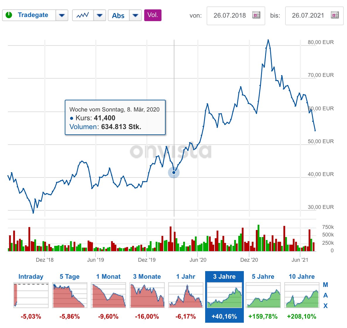 Mato Juli 26, 2021 · bearbeitet Juli 26, 2021 von Mato @Wuppi: Vielleicht hast Du aber einfach prophetische Fähigkeiten und in einigen Tagen trifft der Halbsatz mit dem Corona-Tief dann zu. Ich will jetzt keine Panik verbreiten, aber dass der Kurs (aktuell 51,x Euro) in den nächsten Tagen/Wochen um weitere 10 Euro fällt, würde ich genauso wenig ausschließen wollen wie dass der Kurs sich schnell wieder erholt. Ein einfacher Münzwurf scheint mir da aktuell vergleichbar zu sein bei dem, was mit der Aktie kurzfristig passieren wird. Aber wir legen ja alle langfristig an, sofern kurzfristig nichts dazwischen kommt. Diesen Beitrag teilen Link zum Beitrag