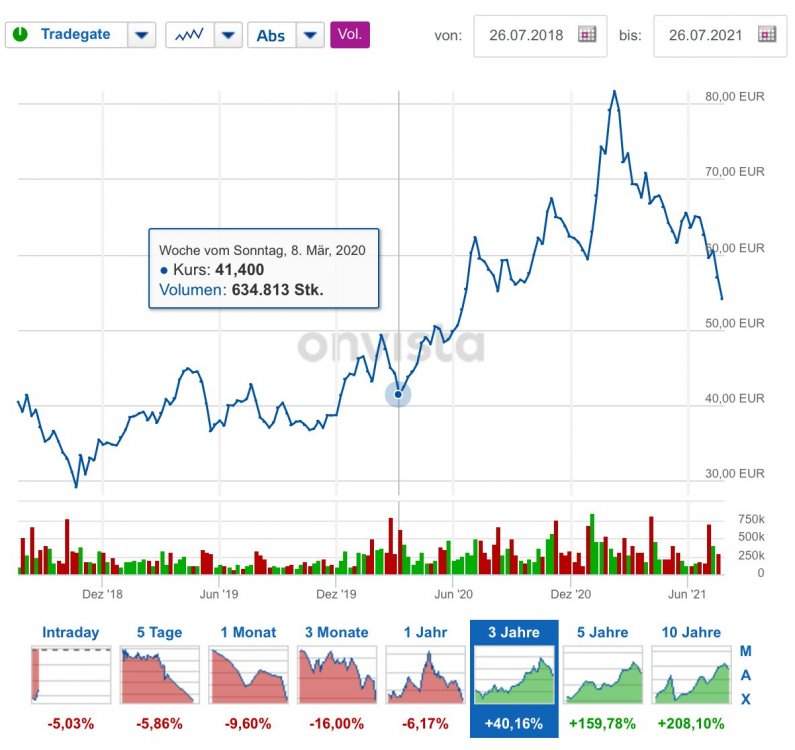 Wuppi Juli 26, 2021 vor 17 Minuten von hattifnatt: Hmm, mit "Corona-März Tief" meint man doch üblicherweise den März 2020 ...? ... ich sollte hier nichts vor dem 2. Kaffee posten Du hast natürlich recht, da hab ich zu schnell geschaut und war im Kopf beim 1 Jahreschart im März und nicht im Juli . Diesen Beitrag teilen Link zum Beitrag