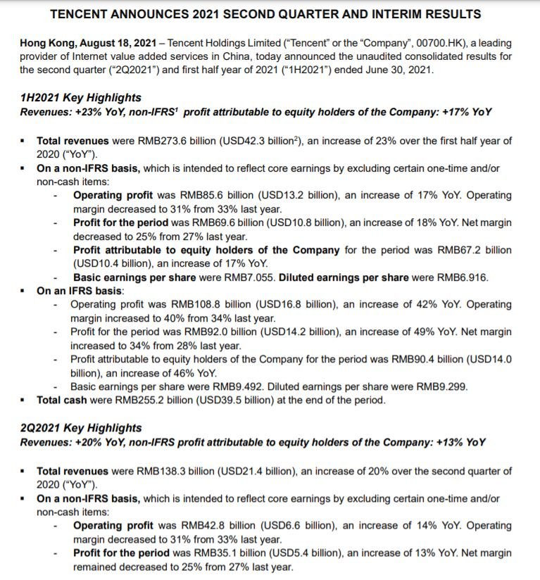 James August 19, 2021 Tencent hatte die Q2 bzw HY2 Zahlen herausgebracht. TENCENT ANNOUNCES 2021 SECOND QUARTER AND INTERIM RESULTS Tencent Announces 2021 Second Quarter Results Dennoch wird Tencent seit Monaten abgestraft, vom Top sind wir bereits über 40% entfernt.. Die Zahlen sind weiterhin 1A, daher werde ich hier sicherlich weiter aufstocken, da in meinen Augen das Geschäftsmodell intakt ist. Natürlich darf man das Thema der Reichenumverteilung in Asien wie auch die restlichen Politischen Risiken nicht ausblenden. In einem Abschlag von 40% sind die aber in meinen Augen schon eingepreist. Wie stehen andere investierte derzeit zu Tencent? Diesen Beitrag teilen Link zum Beitrag