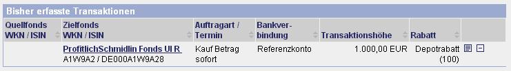 ghost_69 Januar 31, 2014 ProfitlichSchmidlin Fonds UI R Fondsporträt Anlageziel ist ein möglichst hoher Wertzuwachs. Der Schwerpunkt der Anlagestrategie liegt auf der Aufdeckung von Unterbewertungen und der Identifizierung von spezifischen Werttreibern aus verschiedenen Assetklassen. Generell wird eine flexible Allokation in Aktien, Anleihen, Derivaten und Kasse angestrebt. Der Fokus liegt auf Europa. Dem Fondsmanagement liegt ein diskretionärer Ansatz zugrunde. Im Aktienbereich wird hauptsächlich ein langfristig orientierter Value-Ansatz verfolgt. Im Bereich der Unternehmens- und Staatsanleihen liegt der Schwerpunkt auf Sondersituationen. Basisdaten WKN / ISIN: A1W9A2 / DE000A1W9A28 Fondsgesellschaft Universal-Investment GmbH Anlageregion Europa Fondskategorie Mischfonds Asset-Schwerpunkt flexibel Fonds-Benchmark n.v. Risikoklasse 3 Risiko-Ertrags-Profil (SRRI) 5 Fondsvolumen n.v. Auflegungsdatum 27.01.2014 Ertragsverwendung thesaurierend Steuerstatus transparent Geschäftsjahr 1.12. - 30.11. Kauf / Verkauf Ja / Ja Vermögenswirksame Leistungen nicht möglich Kosten und Gebühren Ausgabeaufschlag (effektiv) 5,00% (4,76%) Depotbankgebühr p.a. 0,10% Managementgebühr p.a. 1,75% Performancegebühr 15,00% des Betrages, um den die Anteilwertentwicklung 5% p.a. übersteigt, jedoch höchstens 10% des Durchschnittswertes des Fondsvermögens ProfitlichSchmidlin Fonds UI R.pdf Also bei der FFB bekomme ich ihn mit 100% Rabatt so sehr ich das gerne nur schade das jetzt schon der 31.01. ist, da bekomme ich keinen Sparplan zum 1. mehr hin. Ghost_69 :- Diesen Beitrag teilen Link zum Beitrag