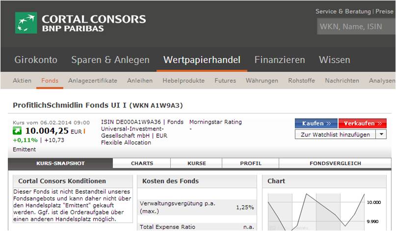 Nudelesser Februar 9, 2014 Habe die I-Variante a1w9a3 bei Cortal Consors bezogen. Tatsächlich? Mir zeigt Consors folgendes an: Dieser Fonds ist nicht Bestandteil unseres Fondsangebots und kann daher nicht über den Handelsplatz "Emittent" gekauft werden. Ggf. ist die Orderaufgabe über einen anderen Handelsplatz möglich. Ein anderer Handelsplatz ist dort allerdings nicht gelistet. Diesen Beitrag teilen Link zum Beitrag