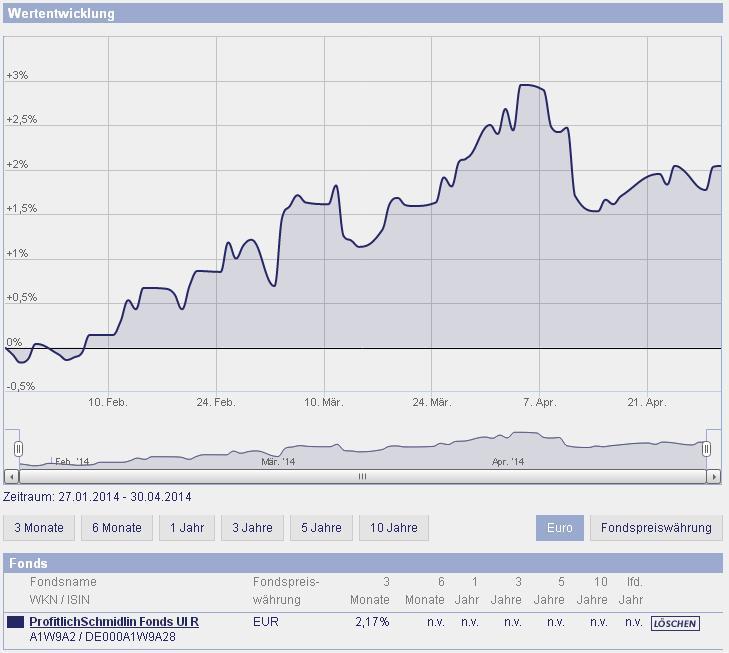 Sapine April 7, 2014 Übrigens haben unsere Youngsters sehr wohl erfahrene Fondsmanager im Rücken, was ihnen sicher von Nutzen sein wird. Die nicht ganz unbekannte Flossbach von Storch AG ist ihrerseits Aktionär bei der ProfitlichSchmidlin AG und im Aufsichtsrat sitzt sozusagen Acatis Gané mit drin über Dr. Uwe Rathausky. Nicht dass das irgendeine Garantie wäre, aber ich schätze die wollten schon ein wenig mehr sehen als ein Schülerdepot um mit einzusteigen. Und dass UI ein renommiertes Investment Unternehmen ist, wird wohl auch keiner bestreiten. http://profitlich-schmidlin.de/wp-content/uploads/2013/12/ProfitlichSchmidlin-Fonds-UI1.pdf Diesen Beitrag teilen Link zum Beitrag
