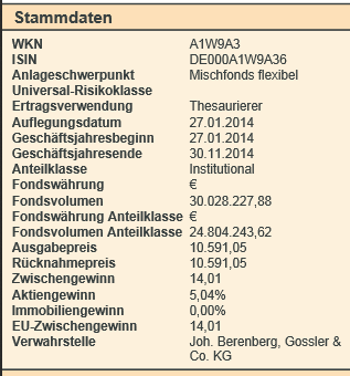 ghost_69 Juni 8, 2014 Ich habe mal den ersten Bericht durchgelesen und finde das schon sehr interessant was die Jungs da machen. Das sind durchweg interessante und gut begründete Anlagen. Jedes Investment kann sehr fundiert begründet werden. Leider fürchte ich, dass es diesem Fonds bei Erfolg irgendwann so gehen wird wie jedem anderen aktiven Fonds: Die Mittelzuflüsse werden zu groß und man kann das ganze frische Geld nicht mehr in solche illiquiden Gelegenheitskäufe stecken, weil man sonst deren Preise zu sehr manipulieren würde. Also muss man sich bei den üblichen Verdächtigen, sprich Bluechips und liquide Anleihen, bedienen. Damit wird eine Outperformance schwierig. Meine Meinung ... Bisher hat der Fonds nur ein Volumen von 20,67 Mio. EUR (alle Tranchen), bis dahin, dass er zu groß wird, dauert es sicherlich noch ein paar Jahre, die meisten Fonds tauchen erst dann auf, wenn sie nach etwa 3 Jahren oben in den Fonds Statistiken stehen. Ghost_69 :- Diesen Beitrag teilen Link zum Beitrag