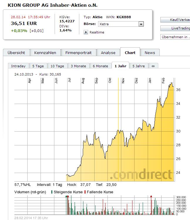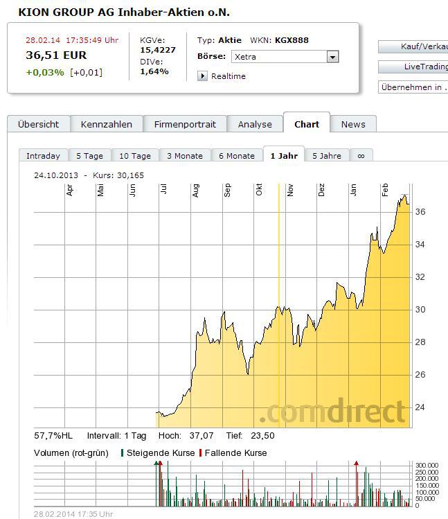 WOVA1 März 3, 2014 Gute Unternehmensvorstellung ! KION ist einer der Werte, die auch auf meiner Watchlist stehen - als Risiko schätze ich aber ein, dass noch 75 % der Aktien den Finanzinvestoren gehören, die KION damals von Linde gekauft haben. Irgendwann werden die Kasse machen wollen. Erhöht zwar den Freefloat (und verbessert die Chancen, in den Indizes aufzusteigen), aber kann den Kurs erstmal dämpfen. Diesen Beitrag teilen Link zum Beitrag