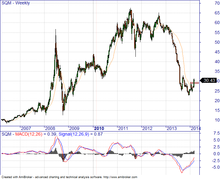 H.B. März 5, 2014 - der Kurs hat trotz obengenannter Punkte schon die Tesla-Hoffnung eingepreist . Ist immer wieder lustig, hier vorbei zu schauen. Da ist definitiv noch viel Luft ... Unabhängig davon hast du natürlich Recht, dass SQM kein Lithium- sondern ein Basis-Chemikalien und Düngemittel-Play ist. Die Ursache des Preisverfalls ist mE wesentlich in der chilenischen Innenpolitik zu sehen. Die allgemeine Rohstoffschwäche und die UralKali-Story taten ihr übriges. Diesen Beitrag teilen Link zum Beitrag