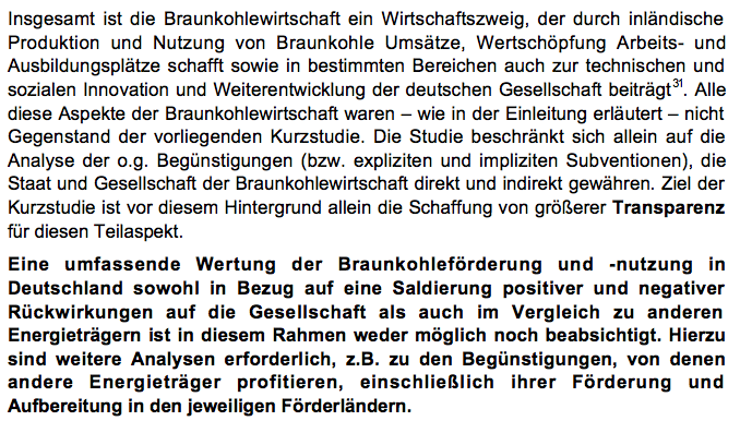Holgerli März 21, 2014 Es ist doch offensichtlich, warum @Holgerli so schwach argumentiert: Er hat die Studie, die er als "Beleg" anführt, nicht einmal gelesen. Denn dort heisst es auf Seite 57: Nachtrag: Denn wenn man den extrem weit gefasste Subventionsbegriff der sog. Studie auch auf die EE anwenden würde, würden auch dort die auszuweisenden Subventionen noch einmal erheblich steigen. Wie jetzt? Reden wir über Subventionen = Geld oder über positive Gesellschaftsentwicklungen? Wenn wir jetzt noch positive Gesellschaftliche Effekte mit in die Diskussion einbeziehen wollen, dann kommen die Erneuerbaren noch besser weg: - Förderung der lokalen Wirtschaft (sowohl Ausbildungs- als auch Arbeitsplätze) - Keine Vertreibung von Bewohnern durch wegbaggern von Heimat - Keine Verbrennung von fossilen Brennstoffen - Energieerzeugung in Bürgerhand Wenn wir das allerdings nicht wollen kommen wir zurück auf das, was die Studie leistet. Zitat aus Deinem Screenshot: "Die Studie beschränkt sich allein auf die Analyse der o.g. Begünstigungen (bzw. expliziten und impliziten Subventionen" Diesen Beitrag teilen Link zum Beitrag