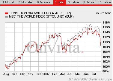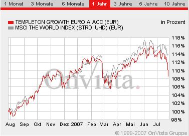 Sirius Juli 6, 2007 · bearbeitet Juli 6, 2007 von frank05 naja..der templeton war schon einige prozent besser -- > http://index.onvista.de/charts.html?ID_NOT...P=941034#chart1 zumindest die euro version in den letzten 7 jahren.....hab jetzt zum vergleich die wkn von der USD version nicht zur hand---- Du musst den MSCI World auf Euro basieren und nicht auf Dollar: http://fonds.onvista.de/charts/performance...amp;CONV_CURR=1 Außerdem solltest Du nicht vergessen, dass beim MSCI World im Chart noch jährlich die Dividenden mit Zinseszins-Effekt hinzuaddiert werden müssten, dann ist der MSCI deutlich besser. Diesen Beitrag teilen Link zum Beitrag