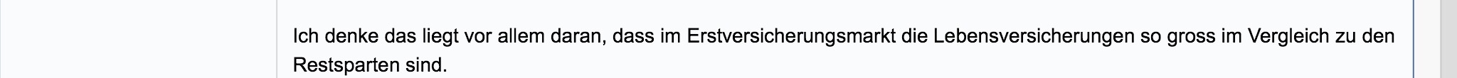 polydeikes April 19, 2014 Also Zahlenmaterial besser beim GDV in den Jahresberichten entnehmen, da hast du wirklich alles was das Herz begehren könnte. --- @JS Meine Finger sind zu ungelenk um mit dem Pad in dem langen Post zu zitieren, hab die Passage als Bild angehängt. Diesen Beitrag teilen Link zum Beitrag