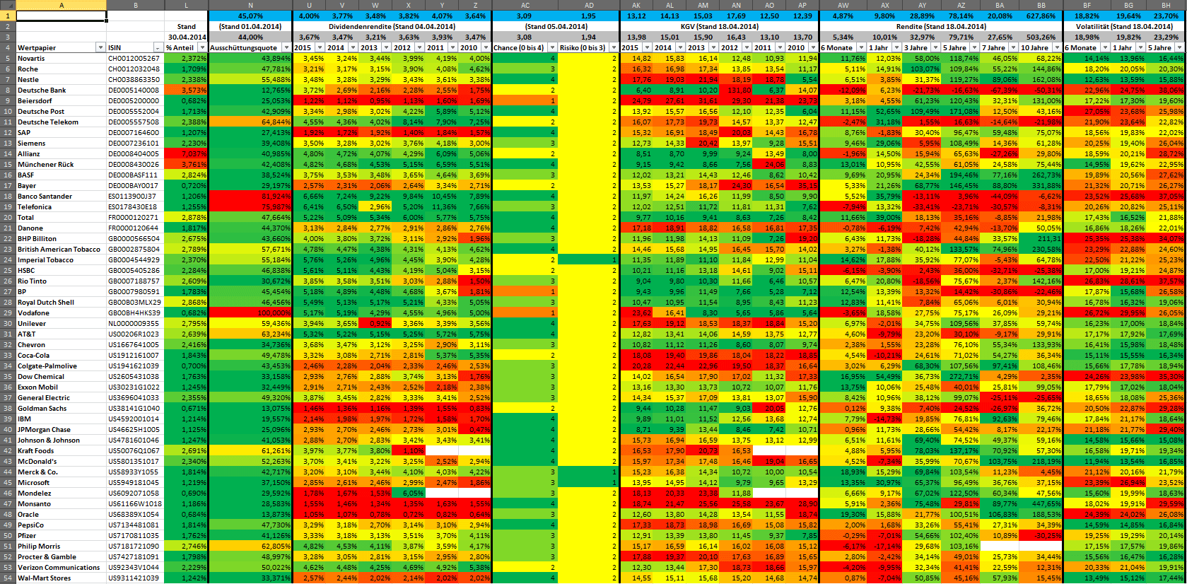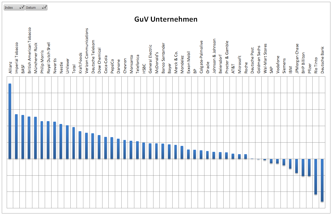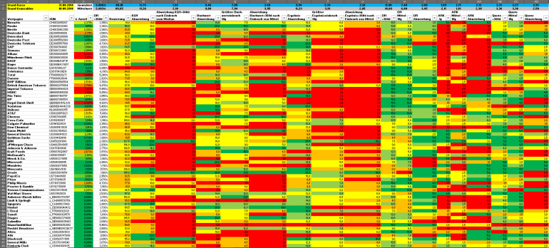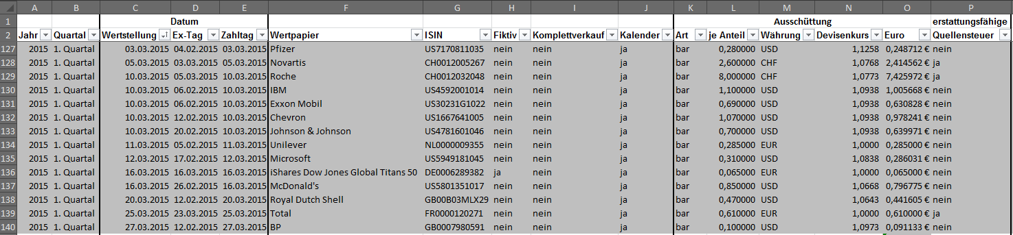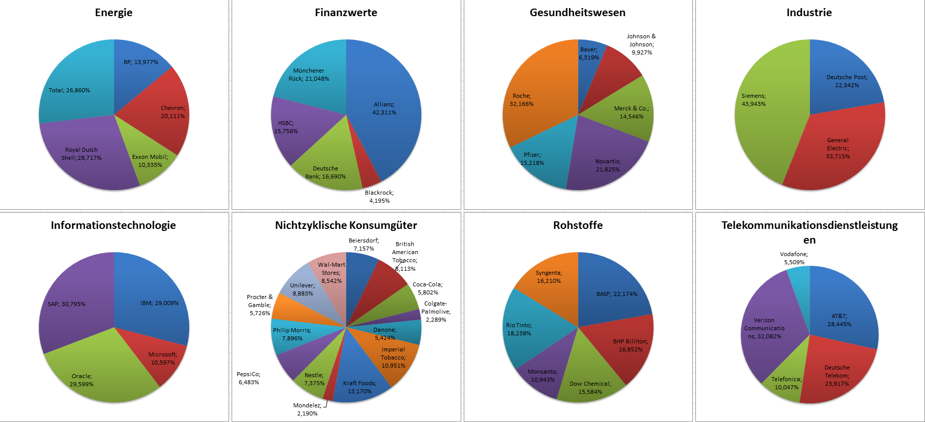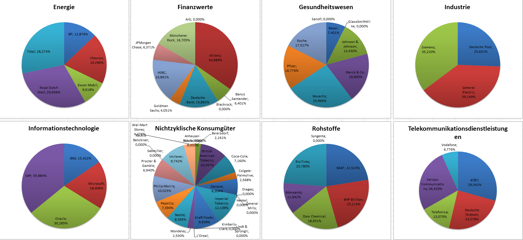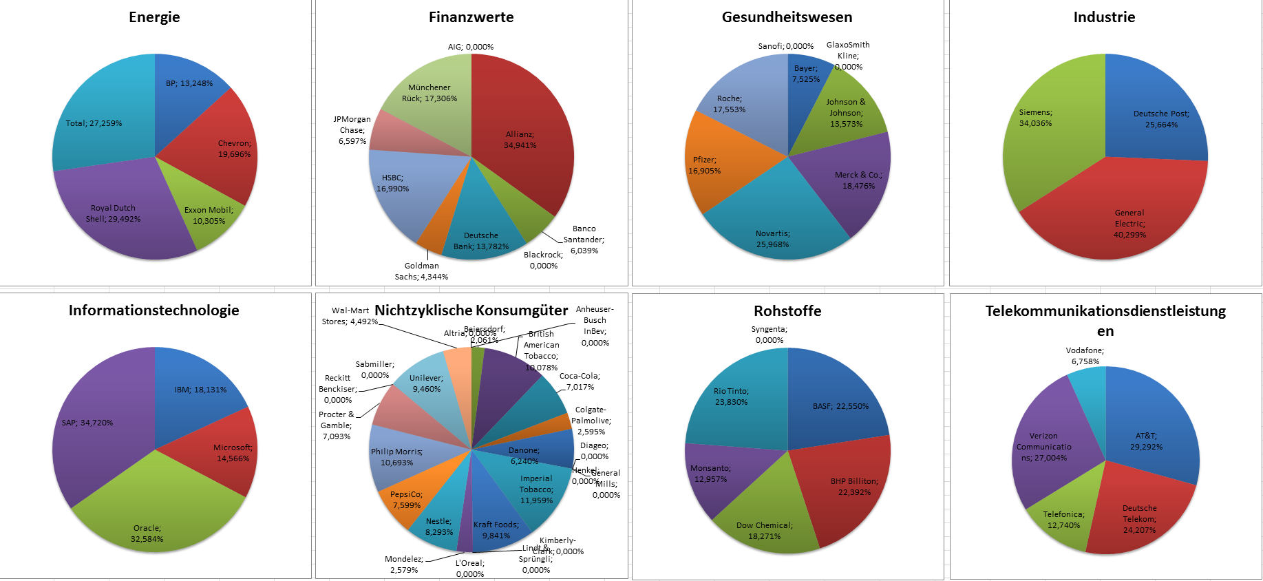 Hamsterrad Mai 1, 2015 Monatlicher Bericht (2015-04) Dividenden seit dem letzten Bericht: Zukäufe seit dem letzten Bericht: Microsoft (teilweise Umschichtung) Wal-Mart Stores (teilweise Umschichtung) Siemens (Umschichtung) AT&T (Umschichtung) Blackrock (Umschichtung) IBM (Umschichtung) Johnson & Johnson (Umschichtung) Procter & Gamble (Umschichtung) Coca-Cola (Umschichtung) Monsanto (Umschichtung) Verkäufe seit dem letzten Bericht: HSBC (Umschichtung) BP (Umschichtung) Dow Chemical (Umschichtung) BHP Billiton (Umschichtung) Rio Tinto (Umschichtung) Total (Umschichtung) Royal Dutch Shell (Umschichtung) Aktuelle Gewichtung und Zukäufe Unternehmen: Aktuelle Gewichtung Branchen / Sektoren / Länder / Währungen: Aktuelle Gewichtung je Branche: Übersicht mit Kennzahlen: Performance seit Auflegung inkl. Vergleichsindexes: Aktuelle GuV Unternehmen + Vergleichsindexes: Diesen Beitrag teilen Link zum Beitrag