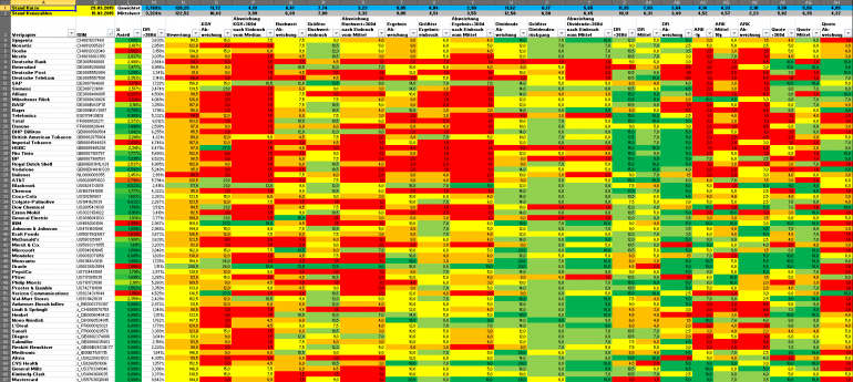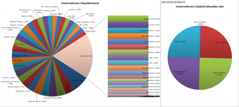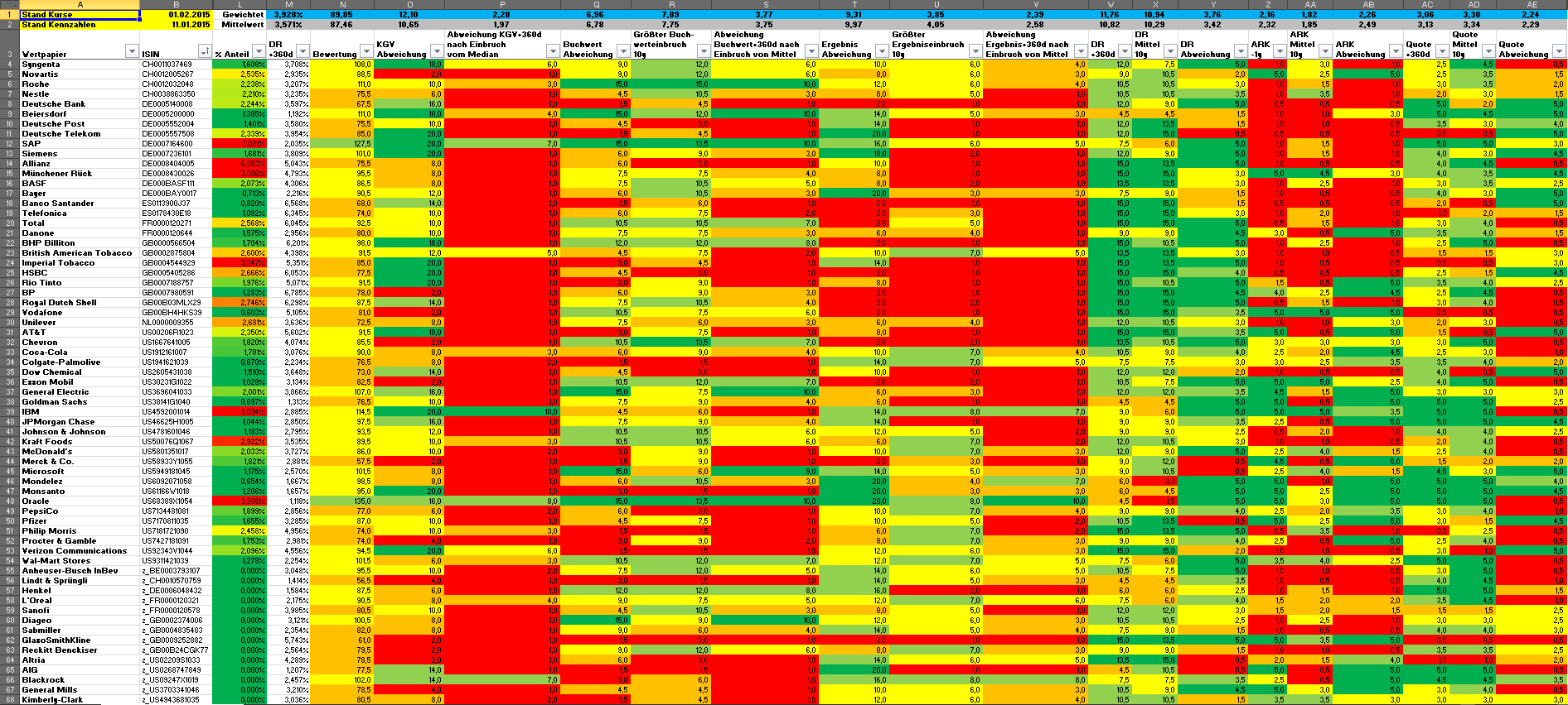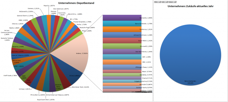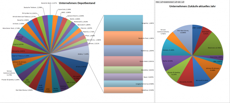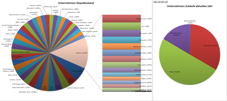 Hamsterrad Januar 31, 2015 · bearbeitet Februar 23, 2015 von Hamsterrad Spoiler zwecks Übersichtlichkeit eingefügt Monatlicher Bericht (2015-01) Dividenden seit dem letzten Bericht: Zukäufe seit dem letzten Bericht: Roche Beiersdorf Aktuelle Gewichtung und Zukäufe Unternehmen: Aktuelle Gewichtung Branchen / Sektoren / Länder / Währungen: Aktuelle Gewichtung je Branche: Übersicht mit Kennzahlen: Performance seit Auflegung inkl. Vergleichsindexes: Aktuelle GuV Unternehmen + Vergleichsindexes: Diesen Beitrag teilen Link zum Beitrag