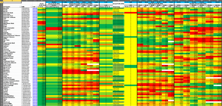 Hamsterrad Juni 27, 2014 · bearbeitet Februar 23, 2015 von Hamsterrad Spoiler zwecks Übersichtlichkeit eingefügt Monatlicher Bericht (2014-06) Dividenden seit dem letzten Bericht: Zukäufe seit dem letzten Bericht: HSBC gemäß Regel 1 Royal Dutch Shell gemäß Regel 1 Aktuelle Gewichtung und Zukäufe Unternehmen: Aktuelle Gewichtung Branchen / Länder / Währungen: Aktuelle Gewichtung je Branche: Übersicht mit Kennzahlen: Performance seit Auflegung inkl. Vergleichsindexes: Aktuelle GuV Unternehmen + Vergleichsindexes: Diesen Beitrag teilen Link zum Beitrag