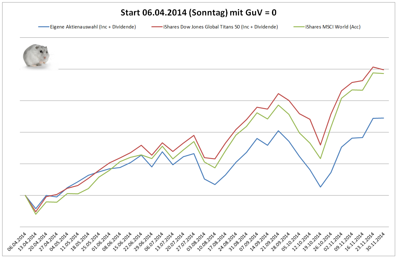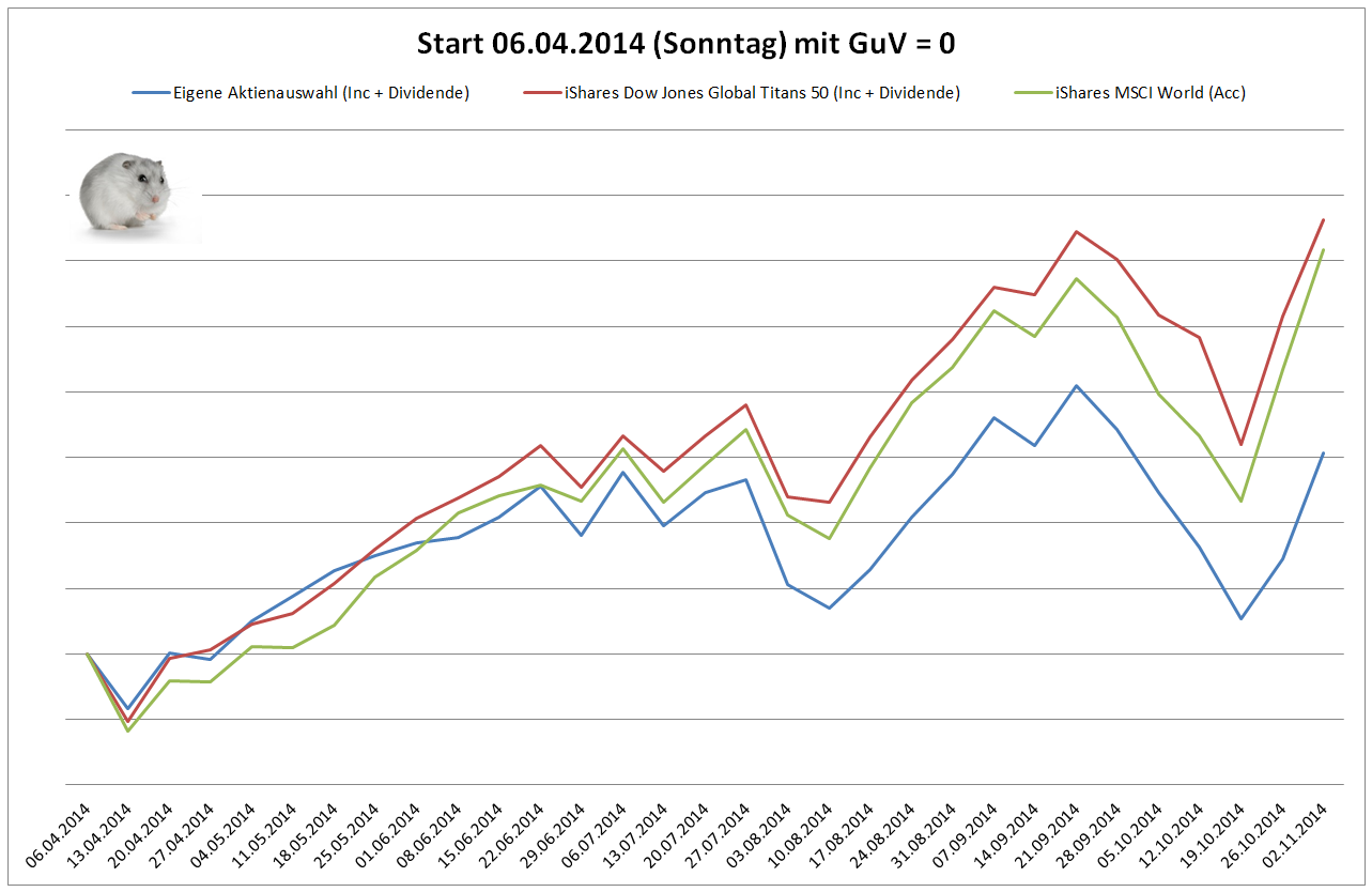 Hamsterrad November 1, 2014 · bearbeitet Februar 23, 2015 von Hamsterrad Spoiler zwecks Übersichtlichkeit eingefügt Monatlicher Bericht (2014-10) Dividenden seit dem letzten Bericht: Zukäufe seit dem letzten Bericht: Oracle SAP IBM Aktuelle Gewichtung und Zukäufe Unternehmen: Aktuelle Gewichtung Branchen / Sektoren / Länder / Währungen: Aktuelle Gewichtung je Branche: Übersicht mit Kennzahlen: Performance seit Auflegung inkl. Vergleichsindexes: Aktuelle GuV Unternehmen + Vergleichsindexes: Diesen Beitrag teilen Link zum Beitrag