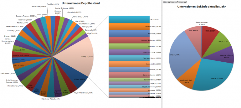 Hamsterrad September 27, 2014 · bearbeitet Februar 23, 2015 von Hamsterrad Spoiler zwecks Übersichtlichkeit eingefügt Monatlicher Bericht (2014-09) Dividenden seit dem letzten Bericht: Zukäufe seit dem letzten Bericht: Oracle SAP Aktuelle Gewichtung und Zukäufe Unternehmen: Aktuelle Gewichtung Branchen / Sektoren / Länder / Währungen: Aktuelle Gewichtung je Branche: Übersicht mit Kennzahlen: Performance seit Auflegung inkl. Vergleichsindexes: Aktuelle GuV Unternehmen + Vergleichsindexes: Diesen Beitrag teilen Link zum Beitrag