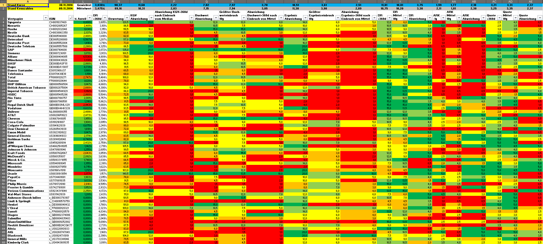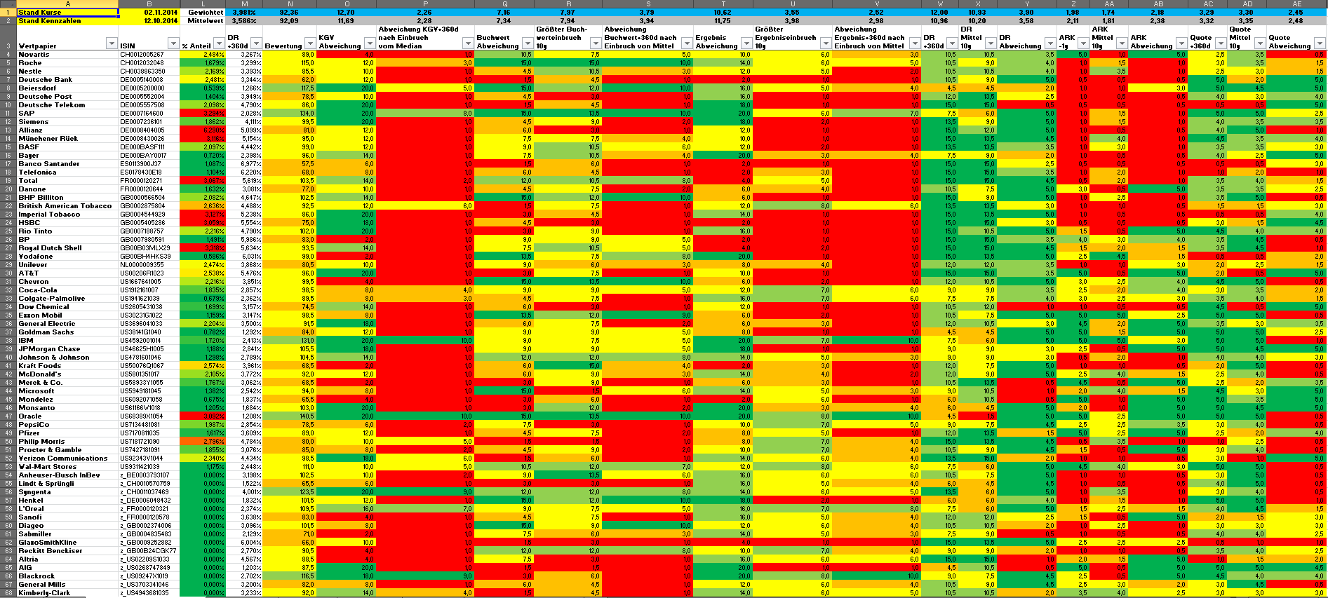 Hamsterrad November 29, 2014 · bearbeitet Februar 23, 2015 von Hamsterrad Spoiler zwecks Übersichtlichkeit eingefügt Monatlicher Bericht (2014-11) Dividenden seit dem letzten Bericht: Zukäufe seit dem letzten Bericht: Syngenta IBM Banco Santander (Stockdividende) Aktuelle Gewichtung und Zukäufe Unternehmen: Aktuelle Gewichtung Branchen / Sektoren / Länder / Währungen: Aktuelle Gewichtung je Branche: Übersicht mit Kennzahlen: Performance seit Auflegung inkl. Vergleichsindexes: Aktuelle GuV Unternehmen + Vergleichsindexes: Diesen Beitrag teilen Link zum Beitrag