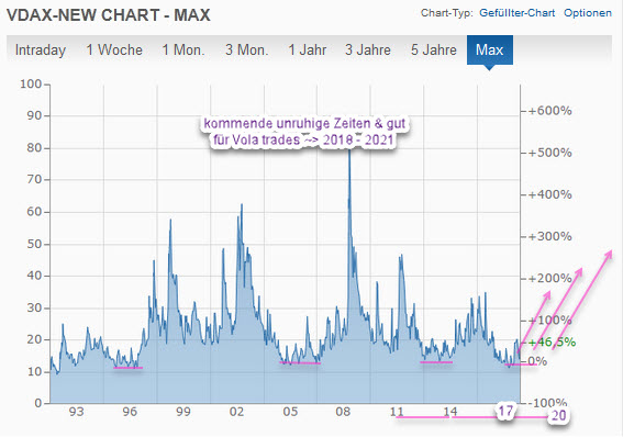 driller Mai 29, 2018 · bearbeitet Mai 29, 2018 von driller Aufstellung über 7 Jahre Optionen nur covered calls - geringer Aufwand + lfd. Verzinsung des Kapitals nach Kosten und Steuern : 2013: 8% 2014: 12% 2015: 17% 2016: 22% 2017: 15% lfd 2018: 8% als Verzinsung des eingesetzten Kapitals ist es mehr, als die Banken offerieren. ---------------------------------------------------------------------------------------------------------------- update cov calls: BAS4 mit 86 ausgeführt neu: Kurzläufer BAW2 -> 102 - 0.40 8.6.18 LHA --> 25.5 - 0.45 Jun ADS --> 205 - 1.10 Jun --------------------------- 1COV -> 82 - 1.10 Jul DB1 -> 120 - 0.67 Jun SIE --> 120 - 2.98 Sep für die long rider gibt es im DAX bald wieder kurzfristig Kaufgelegenheiten für Basiswerte bei etwa 12.600 / 12.300 / 11.870 / 11.470 und im 2.ten Halbjahr erwarte ich steigende Volatilität VDAX s. chart mal sehen was daraus wird :-)) Diesen Beitrag teilen Link zum Beitrag
