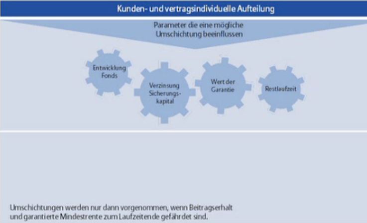 Sapine Juni 24, 2014 Für die Festlegung des Aktienanteils bei den Fonds ist entscheidend wie der Mechanismus mit dem Sicherungsvermögen funktioniert. Die Internetinformationen hierzu haben zwar nette Bildchen, sind aber wenig konkret. Sofern es zu keinen Umschichtungen vom Fondsanteil zum Sicherungskapital kommen kann, kannst Du auch einen hohen Aktienanteil fahren. Aber ist das so? Frag doch mal bei der Allianz nach, ob sie Dir dazu weitere Informationen schicken können, wie die Höhe des Sicherungskapitals konkret berechnet wird und was passiert, wenn die Fondsanteile starke Kursverluste haben. Vielleicht haben die ja eine nette PDF dazu. Diesen Beitrag teilen Link zum Beitrag