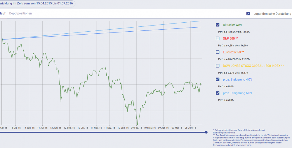 Laser12 Juni 28, 2021 · bearbeitet Oktober 17, 2024 von Laser12 Am 28.6.2021 um 13:27 von Laser12: Moin, Am 27.6.2021 um 16:55 von pillendreher: Aus eigener Erfahrung, wenn man dann kurz vor der Entscheidung steht, von ganz zu gar nicht (Privatier) zu wechseln, dann wechselt man zugleich ab dann von der Ansparphase (Vermögen wird jedes Jahr mehr) in die Entnahmephase (Vermögen schrumpft jährlich). Und das muss man gedanklich erst mal verkraften, man kann sich auch etwas Zeit geben, sich an die Entscheidung zu gewöhnen. Man muss nicht heute entscheiden und morgen das Privatierdasein starten. Die Grundsatzentscheidung habe ich 29 Jahre vorher getroffen und das konkrete Ausstiegsdatum 9 Monate voher. Es gab 7 Monate vor dem Ausstieg noch die Erwägung, den Termin um 6 Monate vorzuziehen. Das war aber nur ein kurzer Gedankengang. Bei meinem Vermögen ist Kapitalverzehr vorgesehen. Insofern trifft die Bemerkung zu, das Ansparen aufzugeben. Einige dokumentieren hier ein deutlich größeres Sicherheistbedürfnis als ich und haben auch in der (Un-)Ruhestandphase deutliche Cash-Überschüsse. In einem solchen Fall hätte ich derzeit wohl Sparpläne auf Russland, Südamerika und die Türkei laufen. Damit will ich sagen, dass fast alle hier eigentlich von einer weiteren Ansparphase ausgehen. Wenn der Verzehr des Kapitals einigermaßen planmäßig verläuft, ist das für mich kein psychologisches Problem. Völlig überraschend war eine große psychologische Belastung, nicht mehr jeden Abend mein Sparschwein mit den Münzen im Portemonnaie zu füttern. Das ist kein riesiger Betrag, der da monatlich rauskommt. Jedenfalls habe ich das wieder eingeführt und die psychologische Belastung daraus war verschwunden. Zitat selbst wenn man ziemlich sicher weiß, dass das vorhandene Vermögen 100+x Lebensjahre reichen wird. Wie sicher kann man da sein? Für mich habe ich 3 mögliche wesentliche Risiken identifiziert. Davon sind 2 von 3 inzwischen eingetreten. Dazu schreibe ich vielleicht später noch einmal etwas in meinem Musterdepot. Im Herbst 2014 gab es 2 10% Korrekturen. Das könnte in dem Moment nicht so schön sein, wenn man gerade zum 31.03.2015 den Job aufgeben will. Dass beide Korrekturen genau so schnell wieder aufgeholt wurden - das kam gelegen. Das sind normale Schwankungen. Das darf einen psycholgisch nicht wirklich treffen. Sonst hat man etwas falsch gemacht. Hier habe ich mal einen Zeitraum meines Fondsdepots ab 2008 rausgeschnitten. Die Grafik zeigt die Summe meines Fondsdepots ab 2008 (grüne Linie) vom 15.04.2015 bis 01.07.2016. Die beiden blauen Linien zeigen eine virtuelle Entwicklung, als hätte das Depot 4% bzw. 6% p.a. zugelegt. So markiere ich die langfristige Wünsch-Dir-Was-Wohlfühlzone. Genau diesen Zeitraum habe ich ausgewählt, da er für Dritte und für die psychologische Belastung am besten verständlich ist. (Einen Tag früher oder später wäre die grüne Depotsumme noch im Verkäufe zu bereinigen und die blauen Linien bilden Abwärtstreppen.) Man sieht da einen 28% Rückgang rechtzeitig zum Beginn des Privatierdaseins. Also wenn man zu einem Zeitpunkt im Kapitalverzehr möglichst keinen Crash haben will, dann ist das genau am Anfang, wenn man noch lange davon zehren will. Meine psychologische Belastung daraus war: Null. Was auf den ersten Blick etwas unglaubwürdig erscheint, hat einen ganz einfachen Grund: Ich habe mir den Depotbestand nicht so wirklich regelmäßig angesehen. Beim Blick in's Depot gab es dann aber doch ein kleines "huch". Konsequenz daraus war dann, dass ich regelmäßiger mal einen Blick in das Depot werfe und gelegentlich Stände notiere für eine Gesamtübersicht inklusive dem Aktiendepot ab 2014 und dem Bargeldbestand für die Brötchen. Das war nicht einmal ein richtiger Crash. Insgesamt war es nicht wirklich dramatisch. Außerdem hatte ich in meinen Simulationsrechnungen einen 50% Crash direkt am Anfang berücksichtigt. Also von "selbst wenn man ziemlich sicher weiß" kann da eigentlich keine Rede sein - zumindest nicht psychologisch. Zitat Zumindest für mich ist's erstrebenswert, trotzdem am Ende des Jahres Vermögenserhalt (inkl. Inflationsausgleich) zu erreichen. Warum? Keine Ahnung. Wahrscheinlich weil man den jährlichen Vermögenszuwachs so gewohnt ist und ein ständiges Schrumpfen des Vermögens schon weh tut. Mein Kapitalverzehr habe ich auf nominaler Basis berechnet. Es gibt aber auch einige Realwertzahlen. Inflation über längere zu prognostizieren, wird schwerlich richtig erfolgreich sein. Alleine die Inflationsmessung ist schon höchst umstritten. Jedenfalls hat mein Warenkorb wenig mit dem offiziellen gemein, der zum großen Teil aus Dingen besteht die im Bezug auf Ihre Leistung im Preis fallen, z.B. Unterhaltugslektronik. Mein Warenkorb sieht dabei z.B. Brötchen vor mit 70-110% Preisanstieg in 6 Jahren, ohne das Schrumpfen und die Erhöhung des Sägemehlanteils. Ich notiere für mich einen eigenen Inflationsindex. Dieser unterzeichnet die Entwicklung, da ich stark auf Preisveränderungen reagiere und ein Großteil der Ausgaben für Luxus draufgeht, den man auch umschichten kann. Kleidung kaufe ich z.B. konsequent im Schlussverkauf. Nachdem ich bei Amazon ein T-Shirt bestellt habe, steigt der Preis häufig auf das 6-fache. Dann kommt das nächste T-Shirt eben später. Wenn ich ein Drittel meines Bestandes durch Verschließ verliere oder an das Sozialkaufhaus abgebe, leide ich keine Not. Bis 2017 konnte ich die Preissteigerungen durch Änderung der Ausgabenstrutkur ca. auf dem offiziellen Niveau halten. 2018+2019 machte sich u.a. bemerkbar, das Kleidung teilweise statt mit 70-80% Rabatt auf den unverbindlichen Mondpreis nur noch mit 10-15% im Schlussverkauf erworben werden konnte und das ich den Ausgleich durch Online-Handel nicht immer hinbekommen habe. 2020 hat mich die Nr. 2 der wesentlichen Risiken erwischt. Das wirkt sich bei mir leider dauerhaft aus. Viele Privatiers wird das so nicht treffen. Was ich monatlich an Geld ausgeb