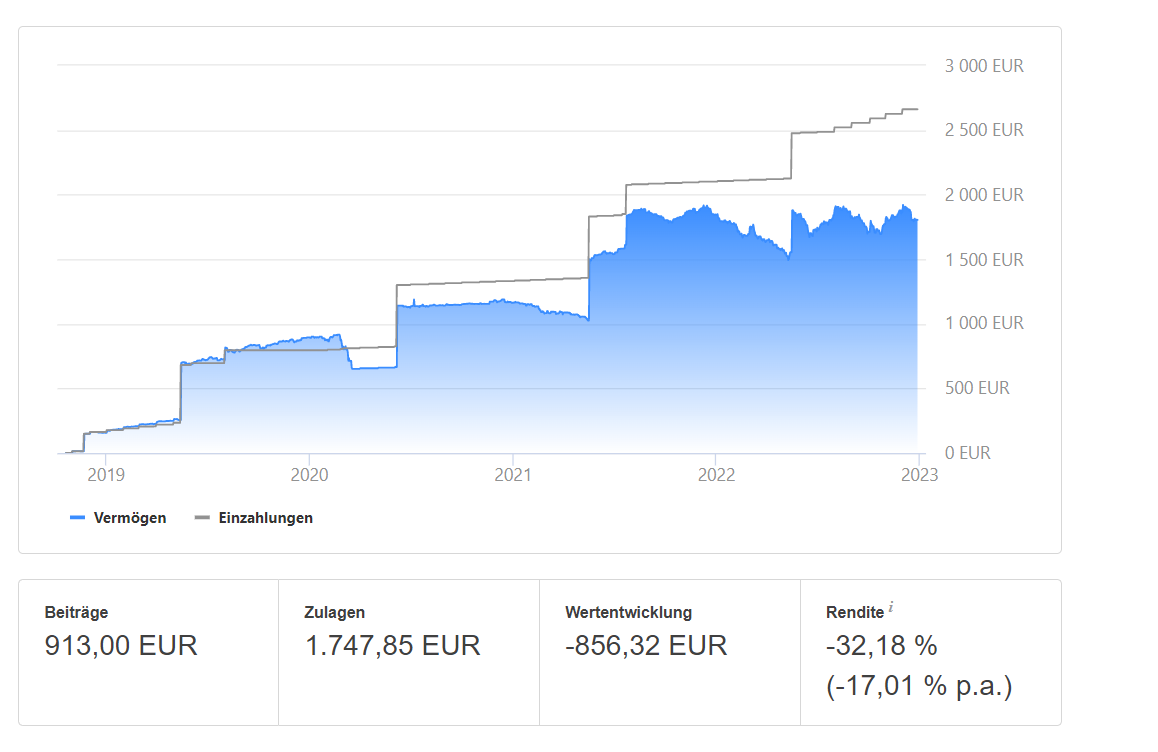 georgi74 Dezember 28, 2022 Wir haben über fairr einen Vertrag für meine Frau in Teilzeit abgeschlossen, nur um die Zulagen zu erhalten. Habe da nicht groß reingeschaut, jetzt mal am Jahresende wieder: -32% Rendite macht etwas sprachlos. Bei den Transaktionen wird gefühlt seit Monaten alle paar Tage das Depot komplett umgeschichtet. Über 100 Tranasktionen im Dezember. Sitzen da bei denen Affen vorm Computer und hauen auf die Tastatur um unser Geld zu verzocken? Diesen Beitrag teilen Link zum Beitrag