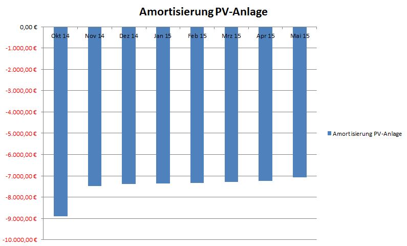 chart Januar 11, 2015 Hallo chart, wir haben auch eine PV-Anlage auf dem Dach (ca. 5,0 kWp), deshalb ist mir das Thema nicht so ganz fremd. Deine Tabelle "Amortisierung PV-Anlage" verstehe ich allerdings nicht ansatzweise. Hättest du Lust, das ein wenig zu erläutern? Danke schon mal... Verstehe ich, ich aktualisiere den Beitrag später noch, dann kannst du vermutlich nachvollziehen wie die Bewegung der Balken zustande kommt. Bisher finde ich den Steueraufwand am schlimmsten, da man auch den Eigenverbrauch versteuern muss. Diesen Beitrag teilen Link zum Beitrag