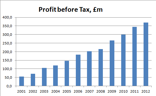 Flughafen August 27, 2014 So, und hier die versprochenen Grafiken. Daten habe ich mir aus den Annual Reports zusammengesucht. Ohne Gewähr, das British English ist für mich etwas gewöhnungsbedürftig und ich könnte mich auch verwählt haben. Den Zahlen vor Börsengang 2004 sollte man nicht viel Aufmerksamkeit schenken, da sie um ca. 2003-2004 auf IFRS von UK GAAP umgestellt haben. Ja, ein UK GAAP gibt es auch. Auch sonst sind die Berichte etwas gewöhnungsbedürftig, ein EBIT oder EBITDA findet man dort nicht, dafür ein Profit before Tax, also Gewinn vor Steuern, aber nach Zinsen und Abschreibungen. Na ja, als Bilanzen-Laie erhebe ich keinen Anspruch auf Perfektion. Diesen Beitrag teilen Link zum Beitrag