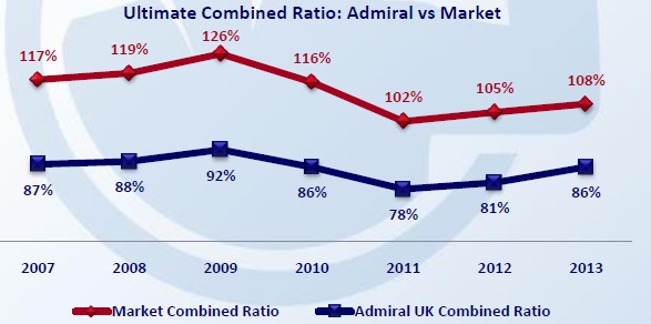MarcelE September 7, 2014 Die Admiral Group hat dagegen ein ganz anderes Konzept. Sie ist eine echte Versicherung (Kein Hedgfonds!), die sich auf ihre Kernaufgaben besinnt: Risiken verteilen und Verwaltungskosten minimieren. Die Admiral Group nimmt 100 EUR an Praemien ein, im Schadensfall werden aber nur 86 EUR faellig. Schlechtes Geschäft für die Versicherungsnehmer, wenn sie bei Admiral 100 EUR Prämien zahlen und nach einer Zeit X nur einen Schaden im Wert von 86 EUR ersetzt bekommen und noch schlechter, wenn sie von der Allianz 100 EUR bekommen hätten. Warum sollten Versicherungsnehmer sich dauerhaft auf so etwas einlassen oder umgekehrt, warum sollten nicht auch andere Versicherer demnächst nur noch 86 EUR Prämie zahlen? Da scheint es aber an einem gewissen Grundverständnis für die Versicherungsbranche zu haken. Bei welcher P&C Versicherung kriege ich denn nur meine bezahlten Beiträge im Schadensfall erstattet? Damit würden ja Haftpflichtversicherungen rein gar keinen Sinn mehr machen. Die Aggregatzahl Combined Ratio kann man grundsätzlich auf verschiedenen Wegen beeinflussen, nämlich durch optimierte Abläufe und wenig Overhead-Kosten (=> niedrige Expense-Ratio, hier ist Admiral ganz weit vorne), und durch dizipliniertes Underwriting, nur Policen zu schreiben, die einen positiven Erwartungswert haben (=> gute Loss Ratio). Ein weiterer, von vielen Versicherungen gegangener Weg ist eine Ausweitung des Prämienvolumens, um anfallende Schäden durch neue Prämien überzukompensieren. Dies ist naturgemäß auf Dauer keine nachhaltige Strategie. Diesen Beitrag teilen Link zum Beitrag