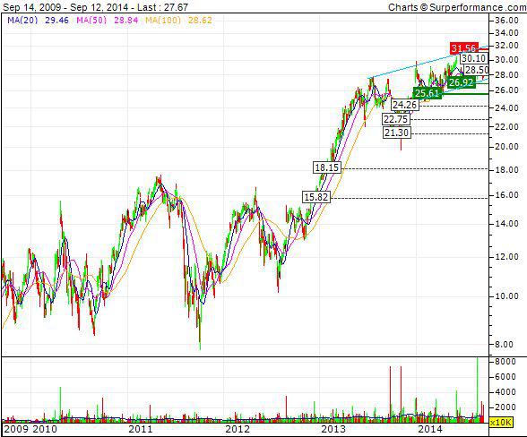Sapine September 13, 2014 Es rollen die Köpfe http://ir.hertz.com/press-releases 8.9. Hertz Announces Mark Frissora To Step Down As Chairman And CEO 10.9. Hertz Equipment Rental Corporation Appoints Christian J. Cunningham As Chief Human Resources Officer 11.9. Hertz Reaches an Agreement-in-Principle With Carl Icahn to Add Three Directors Seit Mitte 2012 hat der Kurs ja schon eine mächtige Ralley hingelegt (Kurse in Dollar), seit Ende letzten Jahres hat sich das Tempo deutlich verlangsamt. Diesen Beitrag teilen Link zum Beitrag