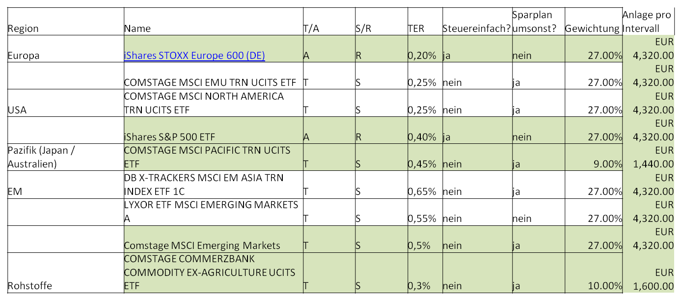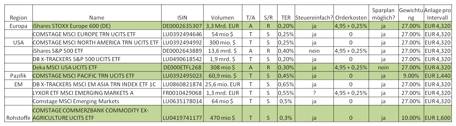 Ramstein Oktober 2, 2014 10% COMSTAGE COMMERZBANK COMMODITY EX-AGRICULTURE UCITS ETF (ja, wegen dem Kommer. Finde das gesamte Buch sehr schlüssig und die Herleitung - wen auch nicht ins letzte Detail - zielführend. Zumindest der Immo-Anteil wurde mir durch euch ja bereits ausgeredet) Nicht durch mich. Ich habe keine Rohstoffe im Weltdepot, sondern den iShares Developed Markets Property Yield UCITS ETF DE000A0LGQL5. Das Argument der Überschneidung mit der eigenen Immobilie ist m.E. wenig tragfähig; die eigenen Immobilie ist ein illiquider Wohlfühlfaktor und keine liquide Finanzanlage. Diesen Beitrag teilen Link zum Beitrag