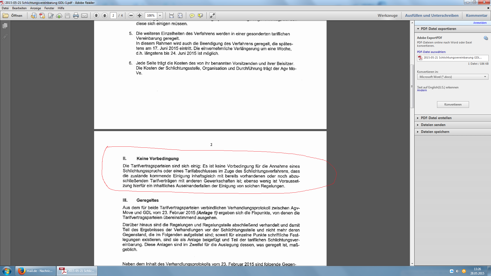 Dort steht eindeutig das wir ohne Vorbedinungen verhandeln dürfen und mit dem Abschluss der EVG wurde dieser schon wieder gebrochen!