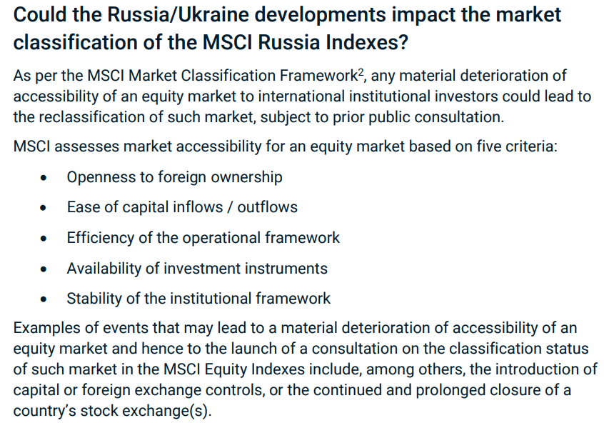 Bigwigster Februar 28, 2022 Mit dem Handelsverbot russischer Wertpapiere könnte Russland doch auch aus der Klassifizierung Emerging Markets herausfliegen, oder? Quelle Seite 10 Diesen Beitrag teilen Link zum Beitrag