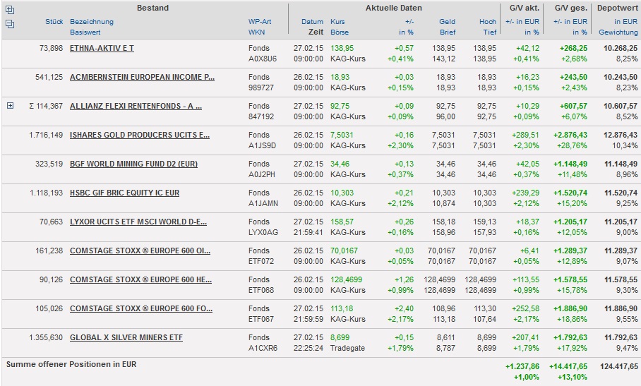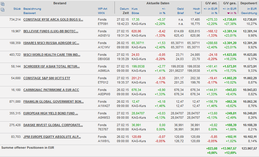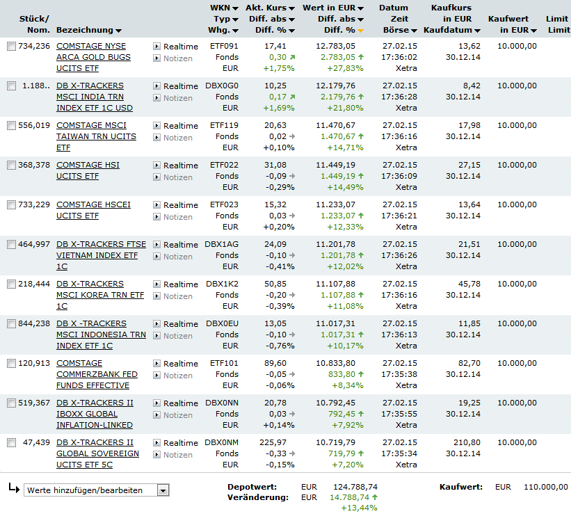 Nunja, dann solltest du aber deine gekauften Anteile entsprechend der KAG-Kurse anpassen, wir spielen ja nach KAG-Kursen. Zwischenstände mit Xetra-Kursen sind ja erlaubt, aber nicht die Berechnung der gekauften Anteile nach Xetrakursen.