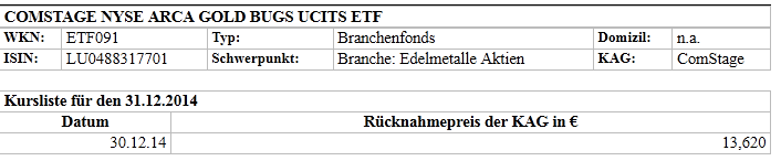 @Jogo: Das ist der Xetra-Schlusskurs vom 30.12.. In der offiziellen KAG-Version hab ich 13,6196€ stehen.