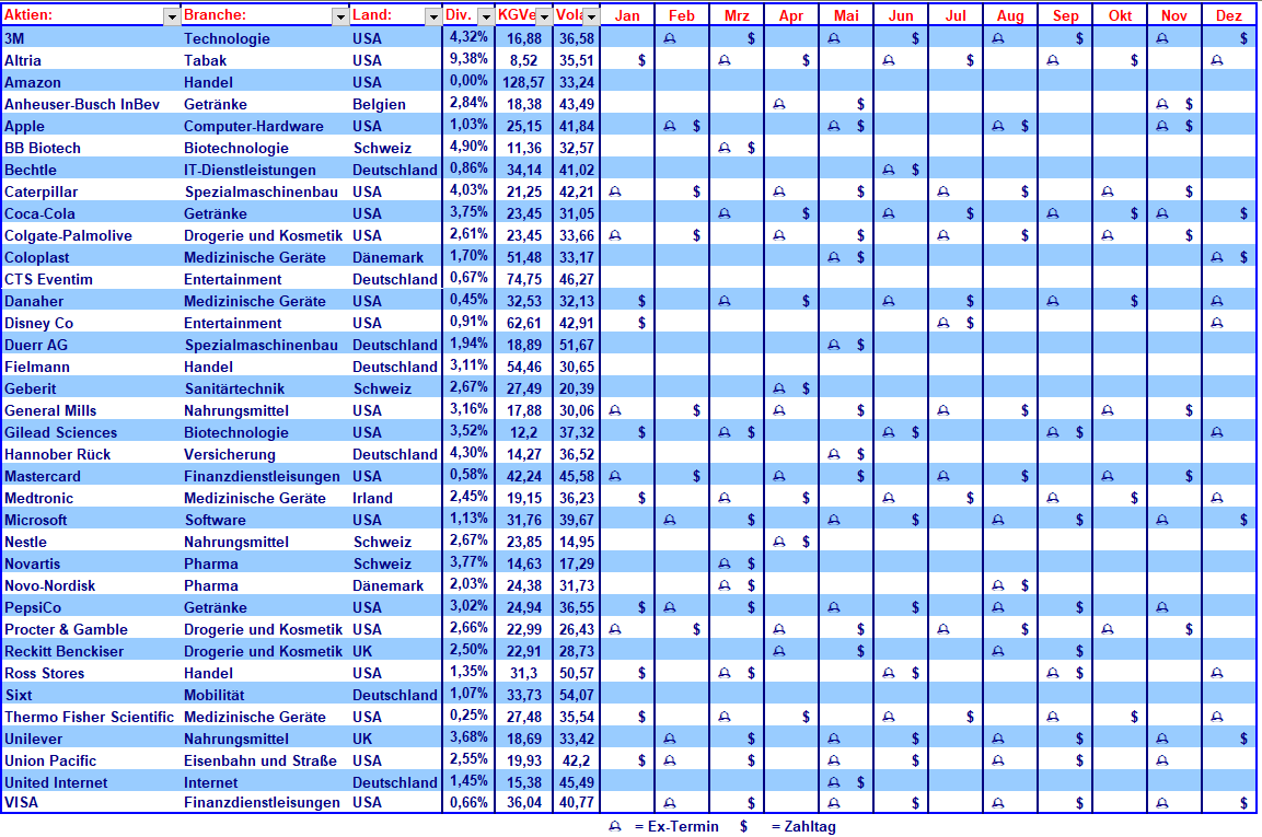 ghost_69 Juni 3, 2020 vor 1 Stunde von DerBademeister: Meinst du mit "Watchlist aussetzen" dass du bei einigen Werten neu einsteigst oder dass du sie erstmal bis auf weiteres nicht mehr verfolgst? Ich habe eine halbjährige Watchlist zum Kaufen bzw. Nachkaufen, da stand jetzt z,B. Disney an, aber da die ihre Dividende für Juli aussetzen und doch recht hoch bewertet sind, habe ich Coca-Cola nach gekauft, die zahlen weiter Dividende und sind vom Kurs her interessanter. Ich habe auf der Liste bis zum Jahresende 14 Werte drauf stehen, aber schon 4 gestrichen, aber ich werde eh nicht alle Werte kaufen können, meist sind es so um die 8-10 pro Halbjahr. Disney wird aber im nächsten Jahr wohl wieder auf der Liste stehen da ich langfristig mehr Anteile haben möchte. Manchmal muss ich einfach auf Gute Gelegenheiten umschwenken, wenn etwas günstiger erscheint oder ich einen neuen Gral finde. Ghost_69 Diesen Beitrag teilen Link zum Beitrag