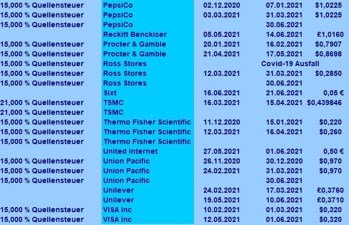 ... es gab Dividenden von Gilead, Pepsi, Ross Stores, Union Pacific und Nvidia für Juni und gleich kam die Coca-Cola Dividende für Juli schon dazu ...