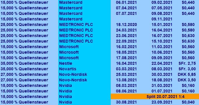 ghost_69 November 13, 2021 · bearbeitet November 13, 2021 von ghost_69 Kleines Update: ... nicht gekauft oder verkauft, überlege gerade den nächsten Wert und den ersten in meiner Watchlist habe ich verworfen, da er zu stark gestiegen ist, daher gibt es einen anderen Wert, mal sehen ... ... dazu überlege ich eine Änderung im Sparplan ... bzw. eine neue Aktie dazu zu nehmen ... Aktuell stehen 452 Aktien zur Auswahl für einen Sparplan: Sparpläne-11-2021.xls Ich möchte am liebsten einen Europäischen Wert, Kaufpreis nicht zu hoch, wegen den Rundungen, mit Dividende und nicht zu hohem KGV und mit min. leichten Gewinnen. Dividenden gab es auch wieder: ... Mastercard und Apple haben gezahlt ... ... bisher liegt der November 20% über dem des letzten Jahres ... ... insgesamt liege ich jetzt bei 11,9% mehr Dividende als im Jahr 2020. Achja fast vergessen: Neues All Time High ! Hier und auch bei den Fonds ! Ghost_69 Diesen Beitrag teilen Link zum Beitrag