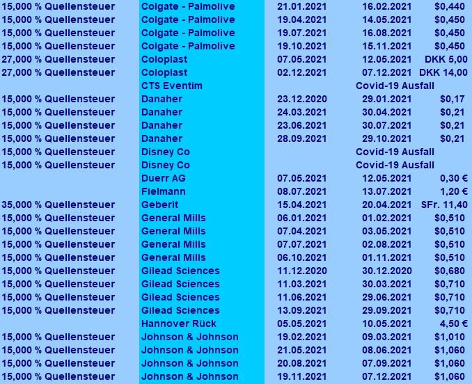 ghost_69 Dezember 18, 2021 Kleines Update: ... Puh was eine Woche, Nestle hat einen neuen HighScore, Novo-Nordisk hat Lieferketten Probleme, bei Medtronic gibt es Probleme mit einem Deal, dafür sind die defensiven Werte Pepsi, Coca-Cola, P&G und Nestle TOP, selbst Accenture ist nicht auf zu halten, die Internet Werte sind stabil, es kommt eben auf die Mischung an. Zwischendurch hatte ich ein neues All Time High. Ich habe noch etwas Cash liegen und bin gerade am überlegen wohin, da das nächste Jahr sicherlich schwankungsanfällig bleiben wird, mit all seinen Herausforderungen, die Pandemie, die Politiker die nicht wissen was sie tun und soviele andere Faktoren. Es gab wieder Dividenden, 3M und Coca-Cola hat die Weihnachtsmann Dividende gezahlt, somit bleibt nur noch eine kleine Dividende offen. Damit liegt der Dezember 25,3% höher als der letztes Jahr. Insgesamt habe ich 27,2% mehr Dividenden eingesammelt als im Jahr 2020. Ghost_69 Diesen Beitrag teilen Link zum Beitrag
