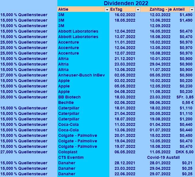ghost_69 August 20, 2022 Splash and Dash: Es gab wieder Dividenden, ... Abbott Labs hat diesem Monat zum ersten Mal gezahlt, Accenture, Colgate, P&G habe ich in der Zeit einmal nach gekauft und die haben ihre Dividende um 5% erhöht, Novo-Nordisk habe ich auch Anfang des Jahres nach gekauft und die haben auch um 21% erhöht, Caterpiller habe ich auch Anfang des Jahres nach gekauft und die haben jetzt um 8% erhöht. ... damit liegt der August jetzt 44% höher als der vom letzten Jahr und ... ... damit liege ich jetzt schon höher als im gesamten letzten Jahr und zwar etwas über 2% und es kommen bekanntlich noch 4 Monate die auch noch ihren Beitrag leisten. Ghost_69 Diesen Beitrag teilen Link zum Beitrag