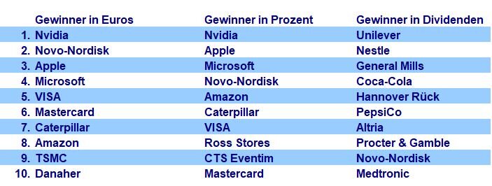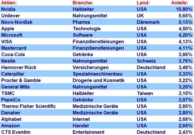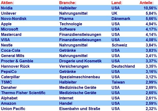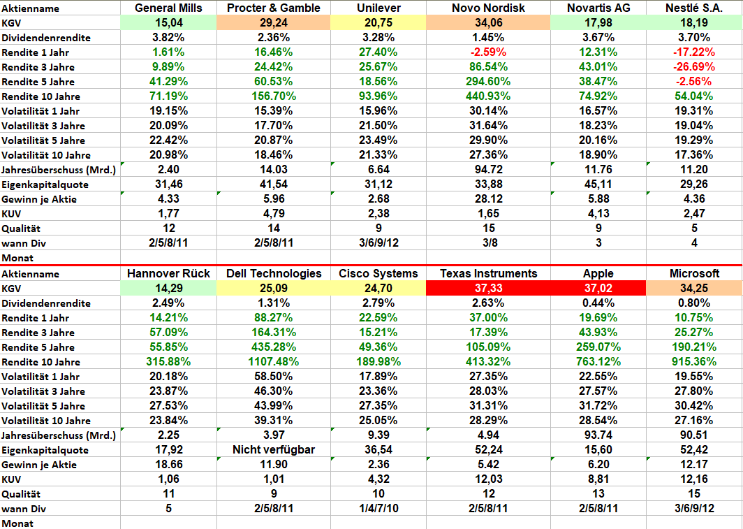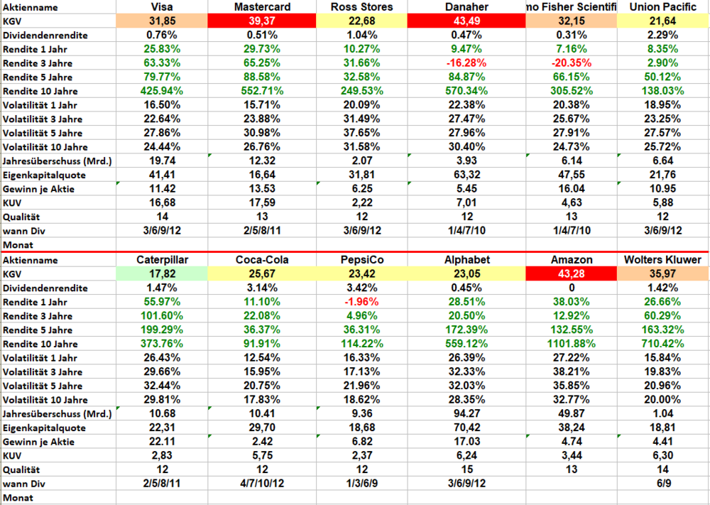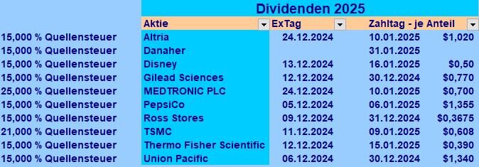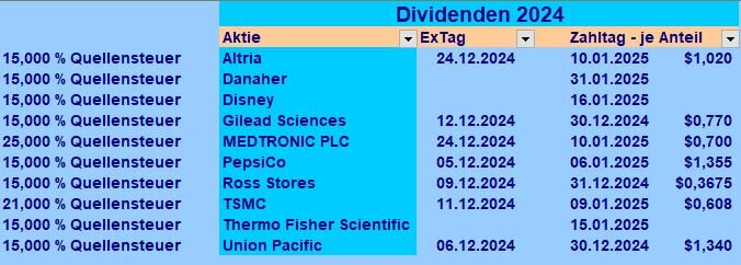 ghost_69 Januar 11, 2025 vor 1 Stunde von Wuppi: danke dir wie immer für interessantes jahr 2024 und das du uns hier so regelmäßig auf dem Laufenden hältst. Spannend dein Portfolio verfolgen. Möchtest du uns etwas über die 11 Werte erzählen die gerade auf deiner Liste stehen? In der Vergangenheit hast du ja öfters einen Mix aus Turn-Around und Wachstum gefahren sprich, fokussierst du dich aktuell eher auf deine vermeintlich "günstiger" bewerteten Unternehmen die an der Börse abgestraft wurden oder auf die Werte, bei denen du trotz vermeintlich höherer bewertung aber auch weiterhin das höchste Wachstum siehst? Welche Industrien hast du für 2025 auf dem Zettel und beschäftigst du dich mit dem Thema geopolitische Spannung d.h. siehst du aktuell z.B. besonders Werte die ein hohes US Exposure haben als interessant/gefährdet und/oder interessiert dich gerade vermehrt der europäische Markt da er vermeintlich günstiger ist (aber auch mit mehr Problemen zu kämpfen hat) Freue mich über ein paar Einschätzungen deinerseids Danke sehr, also hier meine Watchlist vom Dezember für 2025: wobei die 11 Werte von heute sind, Unilever da sie wieder runter gekommen sind und noch umgebaut wird, dauert sicherlich noch 2-3 Jahre, Novartis ist auch billiger geworden, Altria hat eine Marke genommen und steht nach langem mal wieder drauf, Nestle steht regelmäßig drauf, doch aktuell gefällt mir der Abschwung nicht, da gibt es einen schönen Spruch, "Nicht ins fallende Messer greifen", steht also ganz hinten an, Hannover Rück macht gute Erträge mal sehen wie die sich dieses Jahr schlagen, Dividende ist gut, Wolters Knuwer Nachschlag für einen guten Wert von den Nachbarn, Pepsi und Coca-Cola wie jedes Jahr, Alphabet der günstigste Werte der MAG-7 und mit Potenzial nach oben, Novo-Nordisk ist auch unter die Räder gekommen und steht eher für die zweite Halbzeit an und P&G, Werte des täglichen Bedarfs gehen immer. Vergleiche-12-2024-A.pdf Ghost_69 Diesen Beitrag teilen Link zum Beitrag