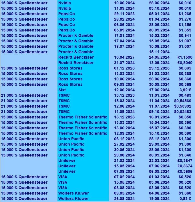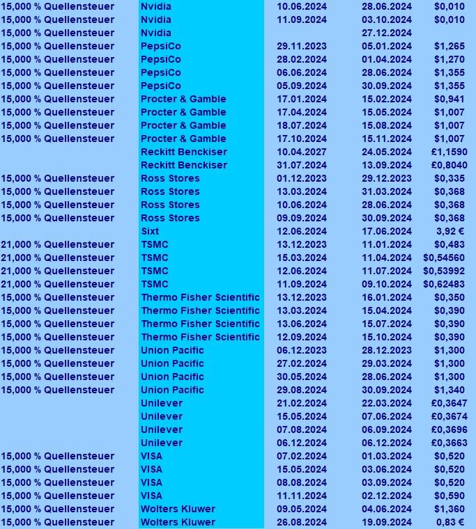 ghost_69 November 30, 2024 mini Update: Das Depot hat sich etwas bewegt, aber der Stand ist fast gleich geblieben, letzte Monat habe ich die Weihnachtsmannaktie nach gekauft, diese letzte Woche habe ich das andere schwarze Gold nach gekauft. Pepsi hat so sieht es aus, einen Tiefpunkt hinter sich gelassen, und die Dividenden sind gerne gesehen. Ghost_69 Diesen Beitrag teilen Link zum Beitrag